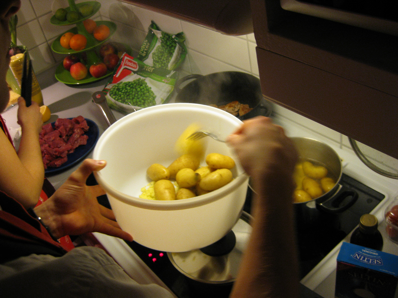 Det nya året firades in med det närmaste vännerna. Vi startade kvällen kl 17 o alla var väldigt punktliga. Prick kl 17 stod alla utanför dörren så det blev kö in.Vi bjöds på välkomstdrink och vi satt oss ned och snackade en stund. Värdparet tog sedan fram en skål med lappar och vi fick dra varsin lapp. Så fick vi veta att vi nu var indelade i 3 grupper som skulle laga kvällens mat. Så en grupp gjorde förrätten (där jag var med), en huvudrätten och till sist efterrätten. När man kände sig redo så drog man igång. Var till en början lite kaos i köket men efterhand så flöt det på riktigt bra.